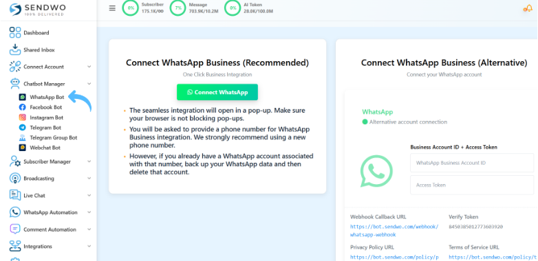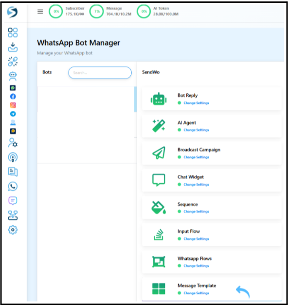 c. Select WhatsApp Bot: Under Chatbot Manager, select WhatsApp Bot from the sidebar.