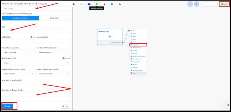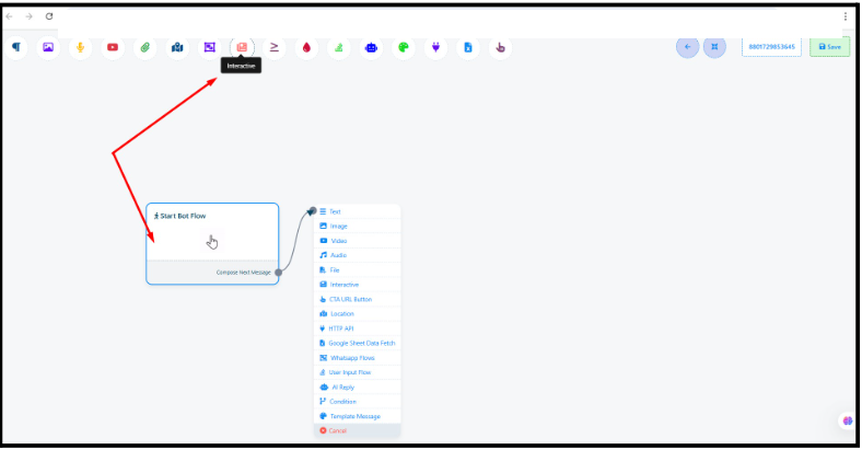 Click Start Bot Flow inside the builder.