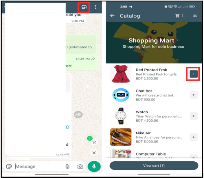 You can see these two options will show in the whatsapp chat section where users will have the ability to see the catalog with a single tap and add products accordingly. (Insights)