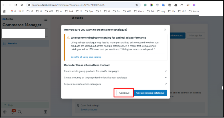 4. Now, enter a catalog name that best suits you (e.g., “Your Store Name Catalog”) and select your business portfolio also.